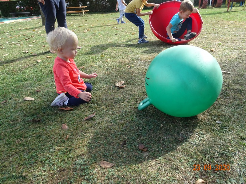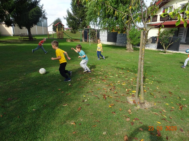 Zaposleni v vrtcih se zavedamo pomena gibanja za naše najmlajše. Na srečo le teh pri tej dejavnosti ni potrebno posebej spodbujati, saj je gibanje njihova osnovna potreba. Da pa bi tudi mi obeležili Dan slovenskega športa, smo danes v gibanju na prostem preživeli kar celo dopoldne in se ob tem neizmerno zabavali.