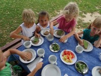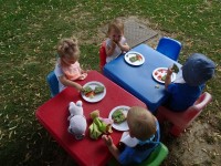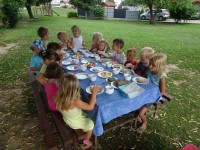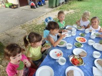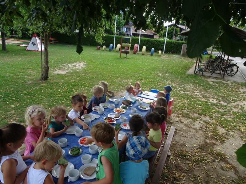 V vročih poletnih dneh so jutra tista, ki jih izkoristimo za osvežitev in bivanje na prostem. Današnje jutro smo poleg raznih iger izvedli tudi jutranjo malico na prostem in otrokom je ob tem hrana še bolj teknila.