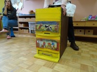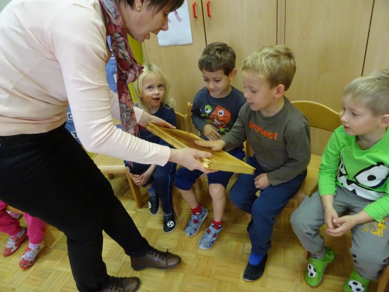 Čebelarjenje pa smo spoznali dan prej, ko smo se srečali s čebelarjem in čebelarko, ki sta nam s prikazom rekvizitov in pripomočkov ter z bogato razlago približala dejavnost, za kar se jima iskreno zahvaljujemo.