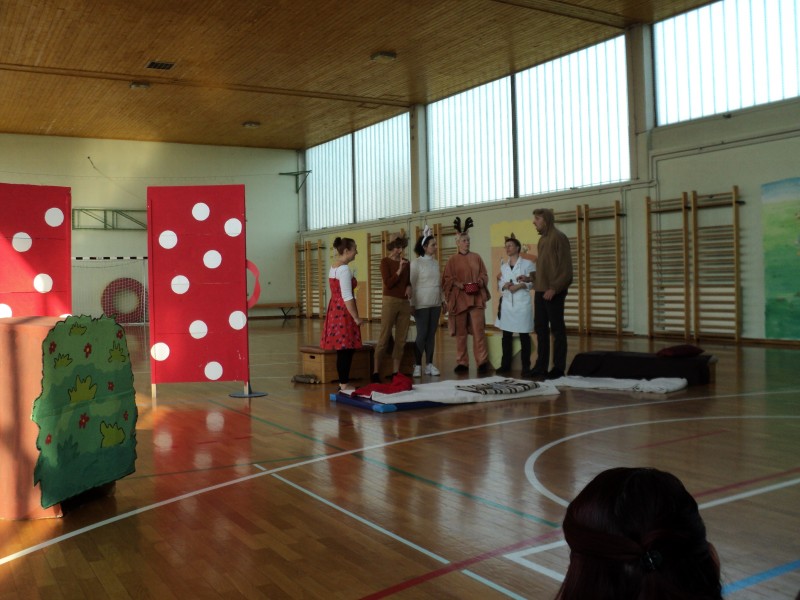 V izvedbi strokovnih delavcev vrtca in OŠ Dokležovje smo si ogledali predstavo po pravljici Mojca Pokrajculja. Vsebina pravljice je bila otrokom že znana, doživeta predstava pa jih je navdušila. Hvala izvajalcem za popestritev dopoldneva.