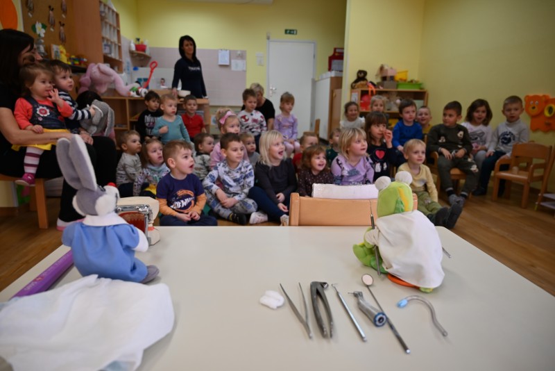 V naši enoti sta nas obiskali zobni asistentki Andreja in Maja, ki sta s poučno predstavo otroke navdušili nad skrbjo za zdrave zobke. Na igriv način sta predstavili pomen ščetkanje ter razložili, zakaj je pomembno, da pazimo na zobe. Otroci so se z veseljem učili in sodelovali, pridobljeno znanje pa bo zagotovo prispevalo k njihovim zdravim nasmehom!