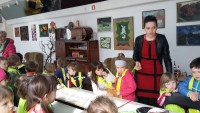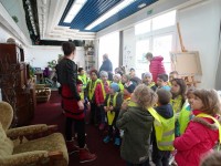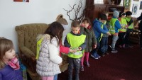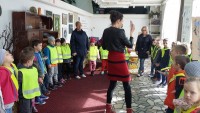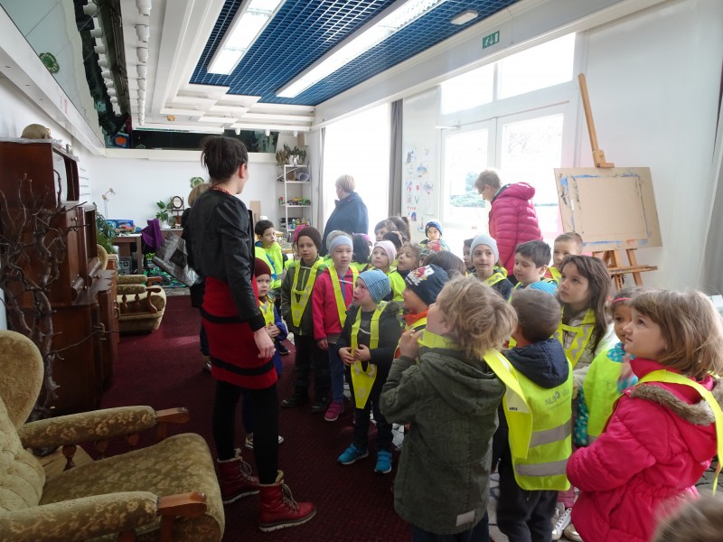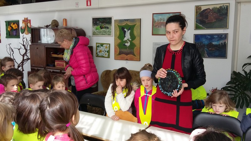 Danes je bil poseben dan. Skupaj z otroki iz vrtca Romano smo si najprej v gledališču Park ogledali predstavo Štirje muzikantje, nato pa smo šli na obisk v salon Umetnosti in ustvarjalnosti Bella. Pogledali smo si salon in razstavo izdelkov, ki so jih izdelali s starši v vrtcu. Pogovarjali smo se o razstavnih prostorih, umetninah, materialih, ... Doroteja nam je pripravila tudi kratko nalogo. Naredili smo krog in se prijeli za roke. Med otroki je krožil zelen krožnik, ki je predstavljal naravo in nalepke z motivom srca (ljubezen). En otrok je izbral nalepko jo podal sosedu, ta jo je zalepil na krožnik in podal naprej. Krožili so tudi kipci, ki so si jih ogledovali in razvijali občutek za pazljivo ravnanje z izdelki.