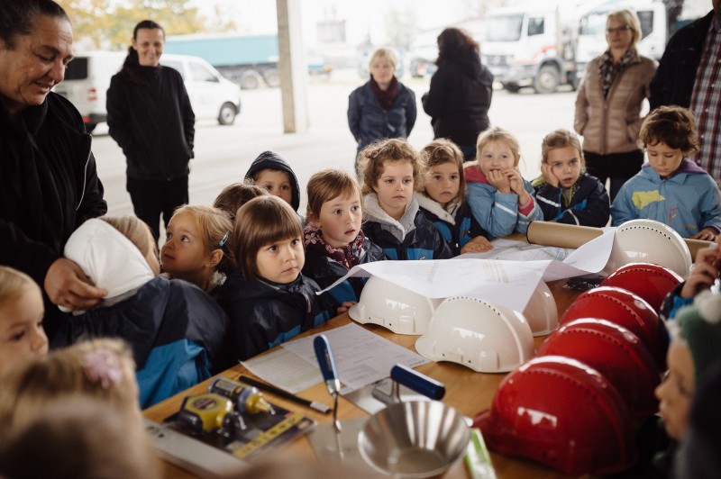 V petek, 7. 10. 2016 so otroci iz enot Miške, Ringa raja in Gozdiček obiskali podjetje Pomgrad. Prijazne animatorke so našim malčkom na zanimiv način predstavile različne poklice v gradbeni panogi. Dan je potekal v prijetem vzdušju ob petju in otroških igricah. Hvala Pomgradu za lep spomin in novo znanje, ki ste ga delili z našimi malčki.