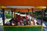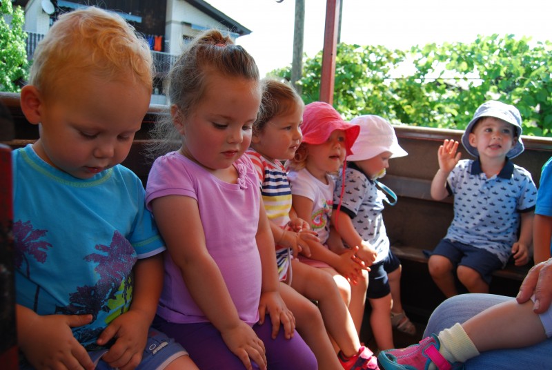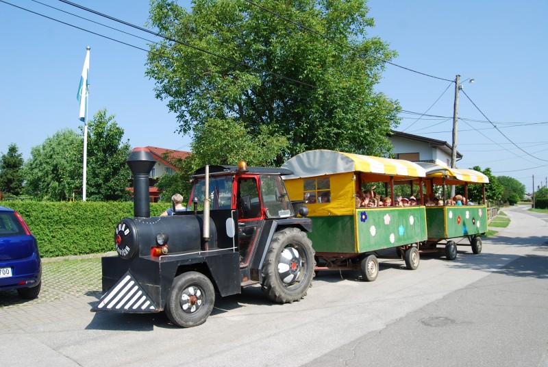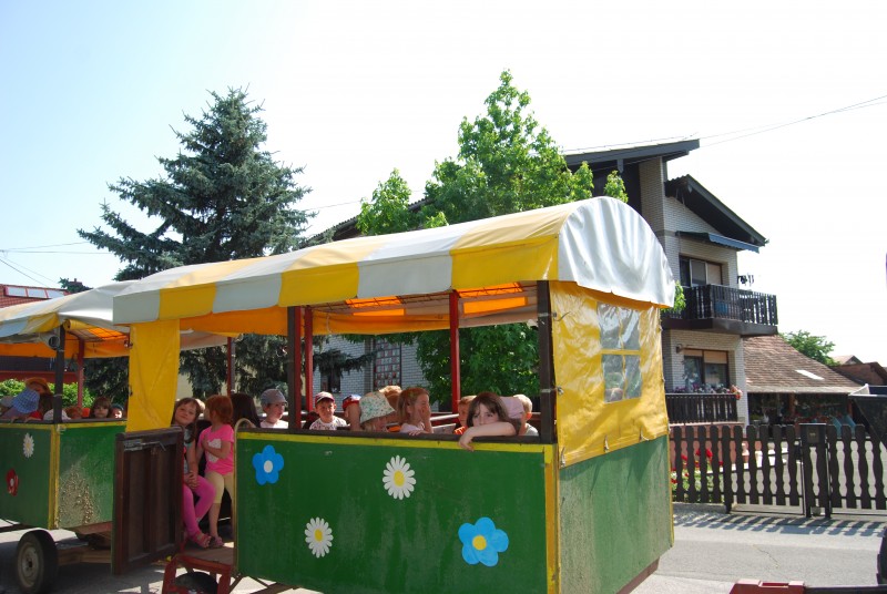 Prijatelji iz enote Veverička so za nas pripravili svojevrstno presenečenje. Na obisk so se pripeljali z vlakcem in tako omogočili tudi nam, da smo se popeljali po ulicah Kroga. Prav zato, ker so nas presenetili z obiskom, je bilo veselje otrok in tudi strokovnih delavcev nepopisno in neponovljivo.