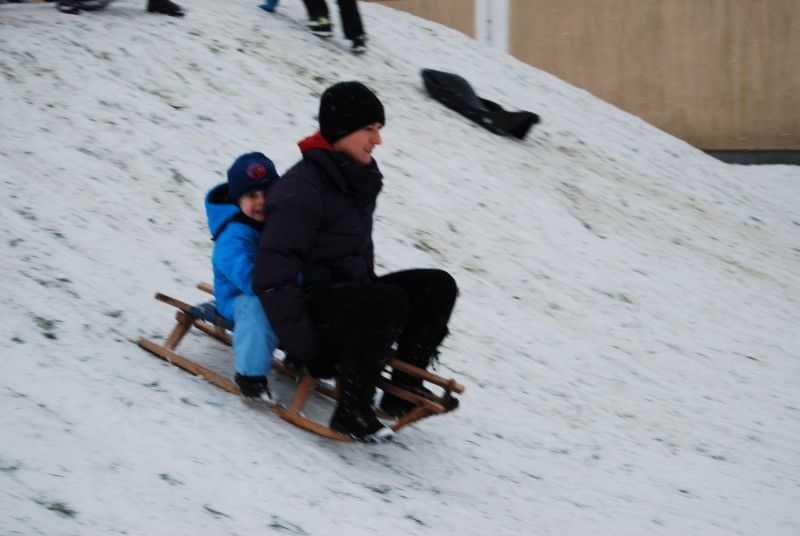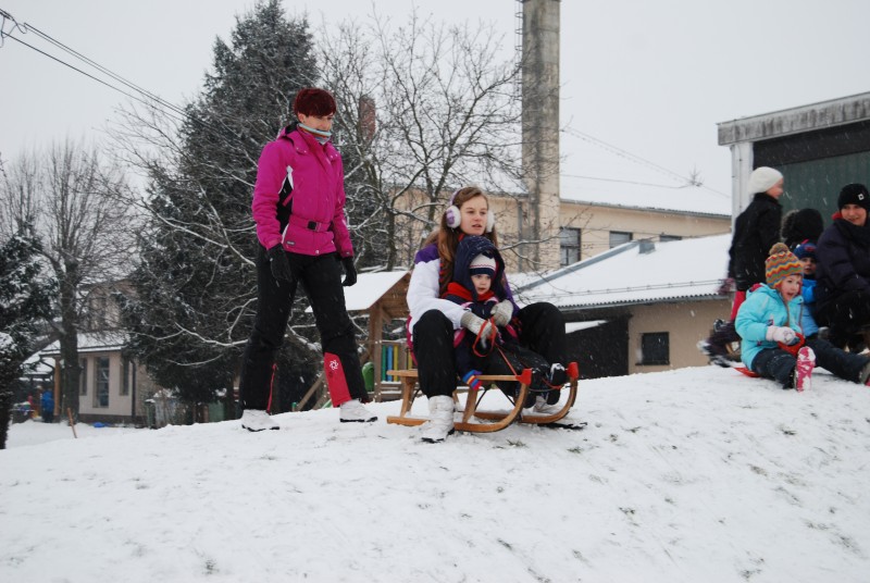 Skupaj smo se kotalili po snegu, se sankali po hribčku, se smejali in veselili toliko časa, dokler nas ni začela lotevati utrujenost.
