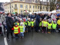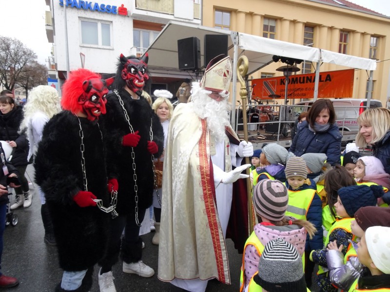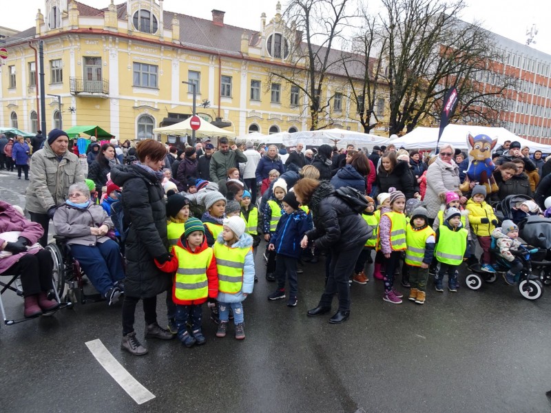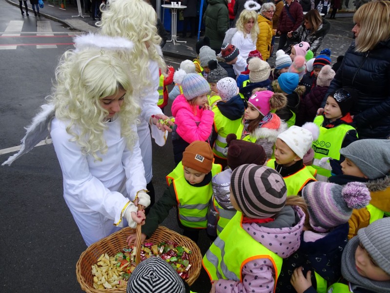 Majhni in veliki iz enote Urška smo se v sončnem dopoldanskem času odpravili v center našega lepega mesta, kjer smo si ogledali "Mikloušovo senje" in prihod Miklavža s Snežinkami in dvema parkljema.