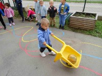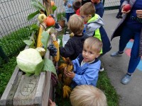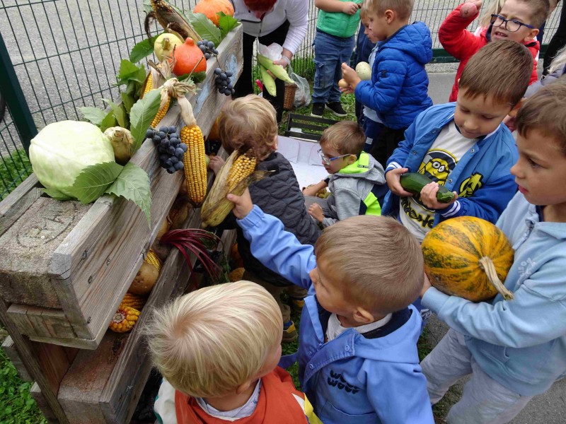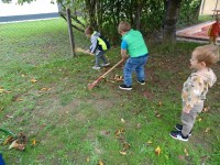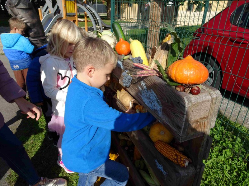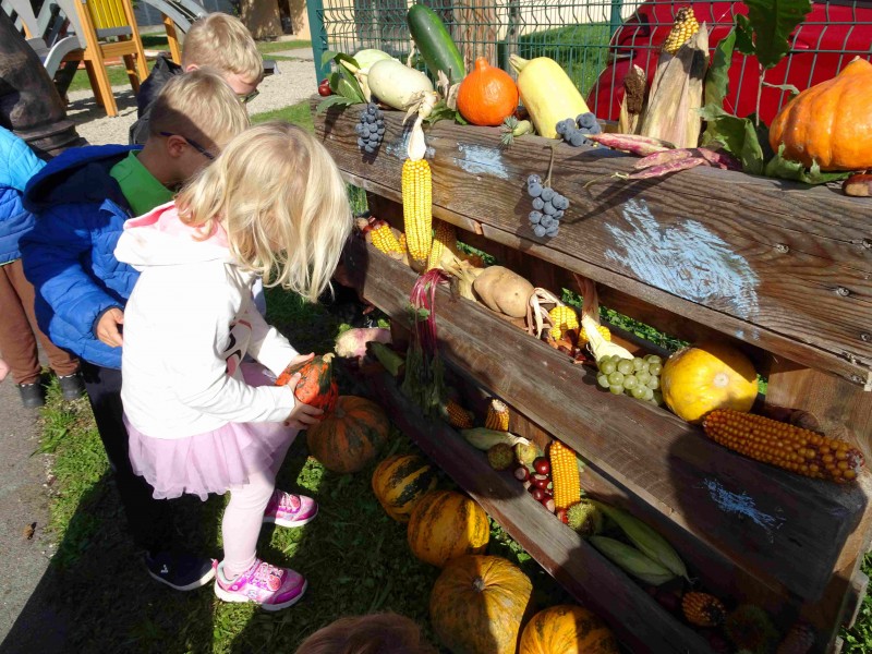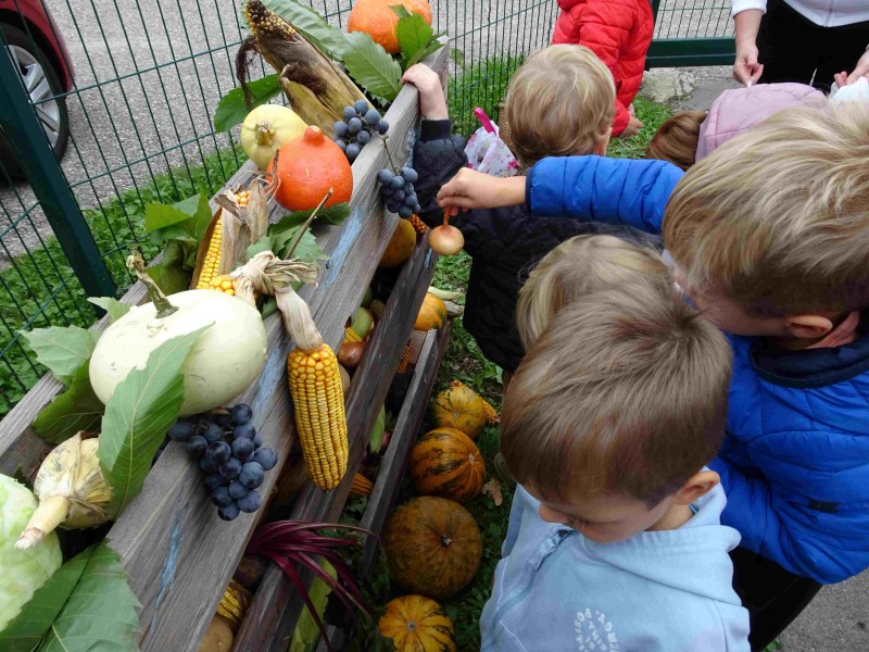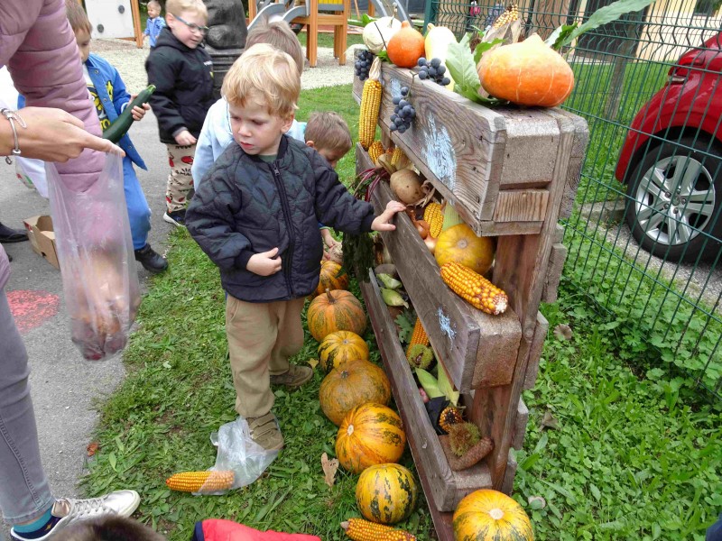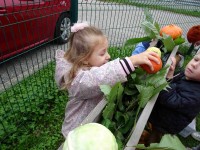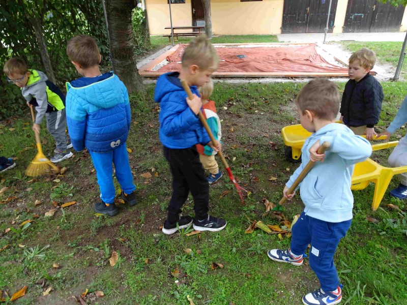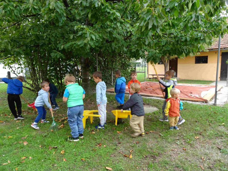 V naši enoti smo ustvari pravo jesenko dekoracijo. Otroci in vzgojiteljice smo okrasili dvorišče, vozili buče in prijatelje s samokolnicami, grabljali pisano listje in se ob tem neizmerno zabavali. S skupnimi močmi smo pričarali prijetno vzdušje jeseni.
