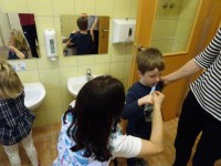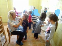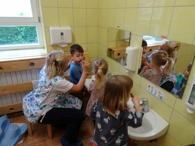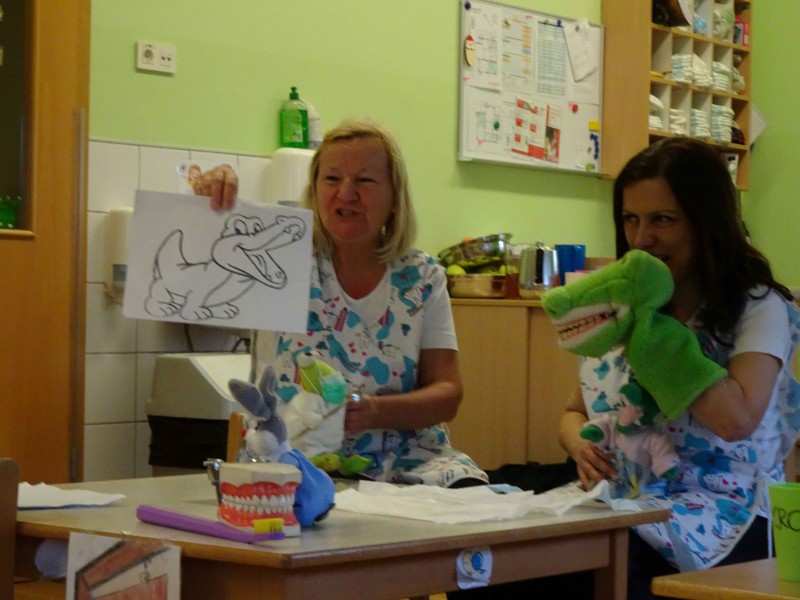 Danes sta nas obiskali zobna asistentka Maja in zobna asistetka Andreja. Zaigrali sta nam lutkovno predstavo o KROKODILU KROKIJU, v nadaljevanju pa smo se naučili, kako pravilno ščetkamo zobe.
