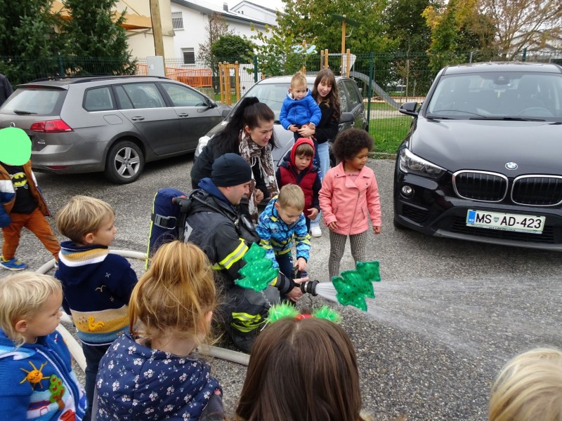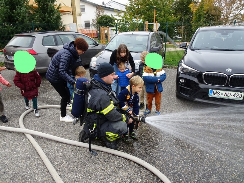 Danes so nas obiskali gasilci PGD Černelavci. Pokazali so nam gasilsko opremo in gasilsko vozilo, ter kako se priklopi gasilna cev in spusti voda.