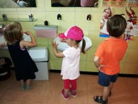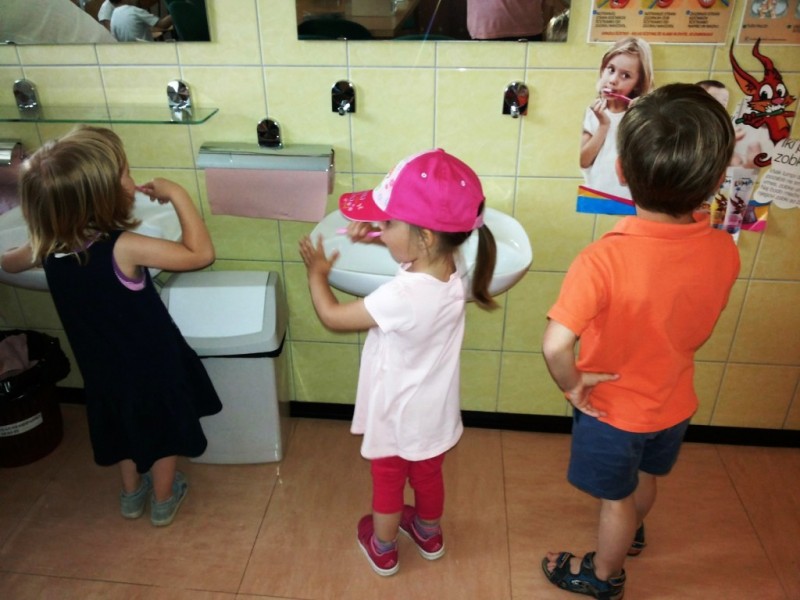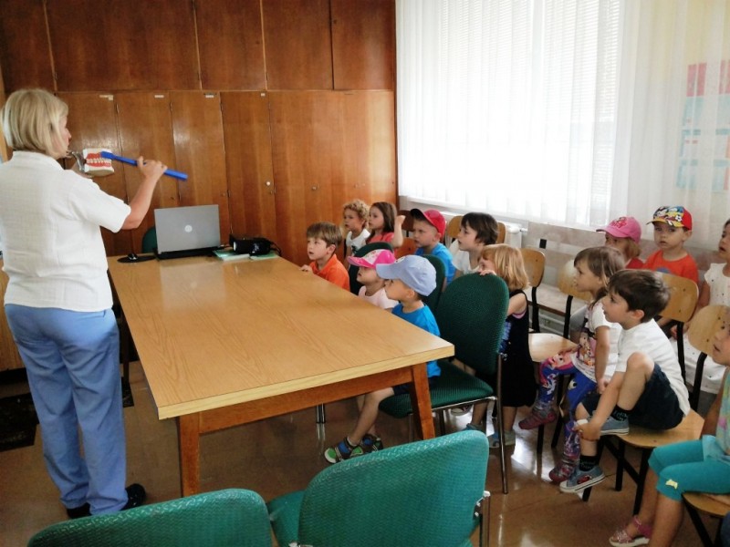 Obiskali smo zobozdravnika. Prijazno nas je sprejela gospa Maja in nas poučila o pravilni tehniki ščetkanja zob. Pomagala nam je, da smo si jih res temeljito umili. Ogledali smo si tudi risanko in se pogovorili o tem, kako zelo pomembno je skrbeti za svoje zobe.