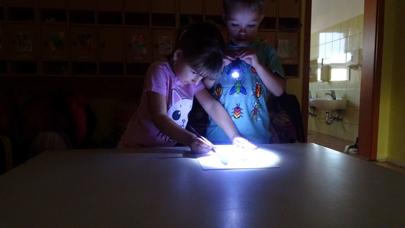 Naša igra je bila usmerjena v poigravanje s senco ter raziskovanje in iskanje zaklada na igrišču v temi.