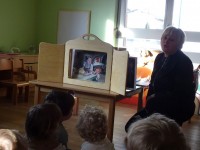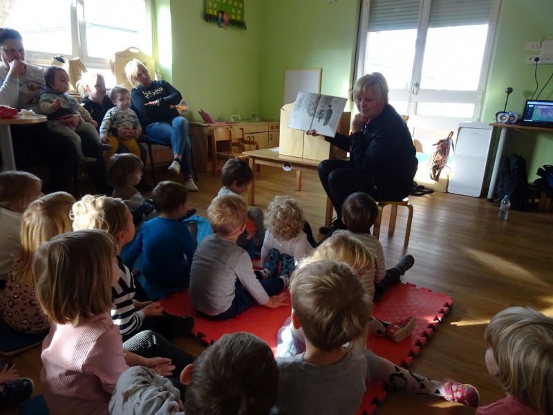 V sklopu obeležitve slovenskega kulturnega praznika, smo danes povabili k nam na obisk pravljičarko Metko iz Pokrajinske in študijske knjižnice v Murski Soboti. Pravljičarka Metka nam je predstavila kamišibaj predstavo "Ježek", pravljico o fantku, ki je želel pisati pesmi in knjigo o obljemih.