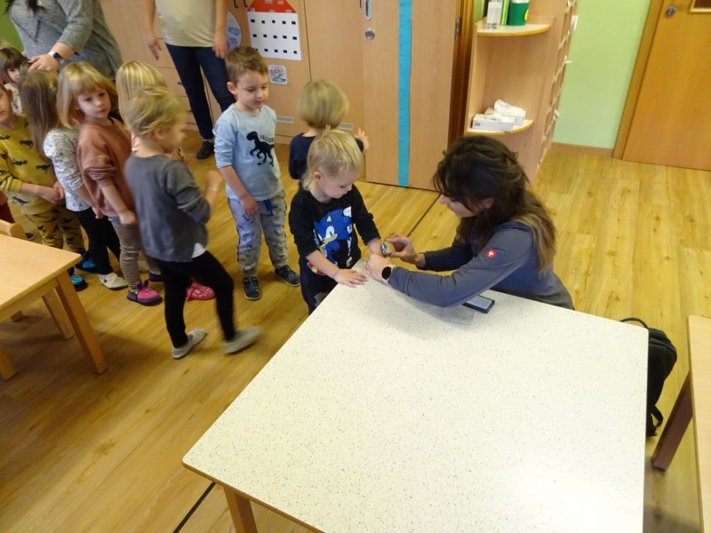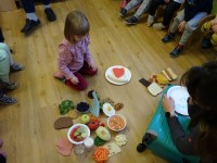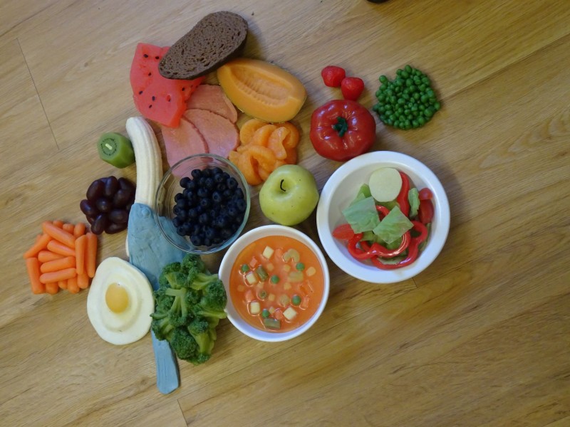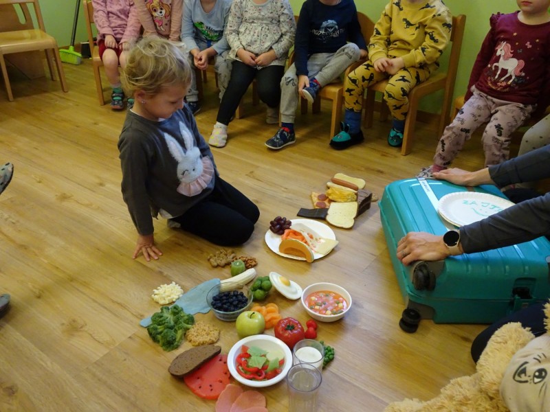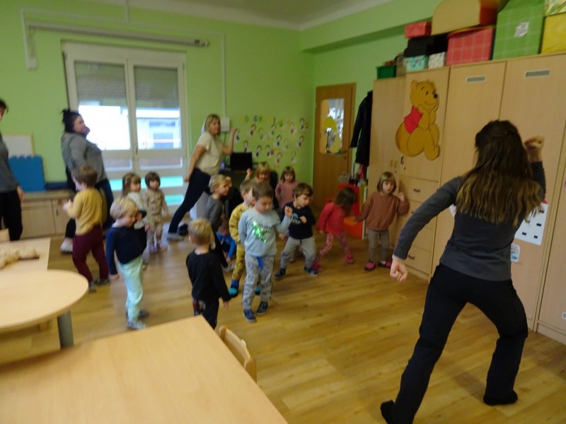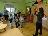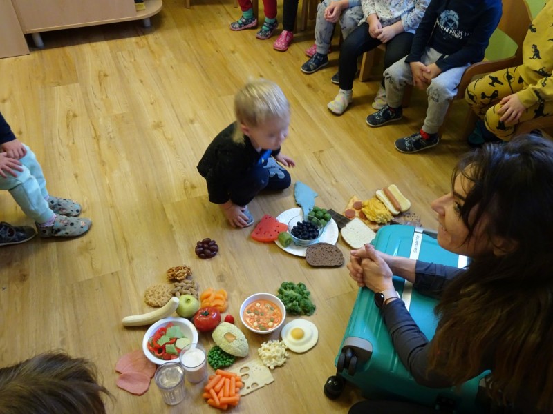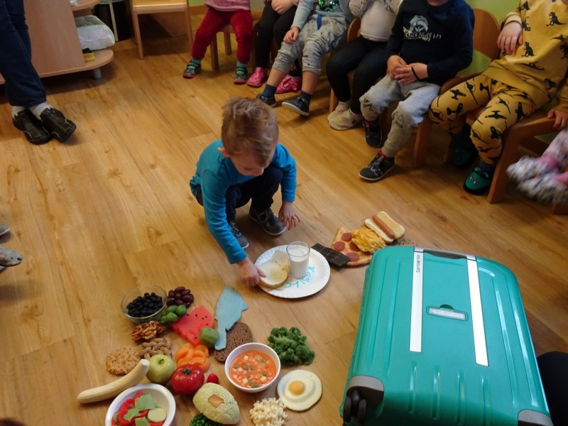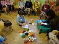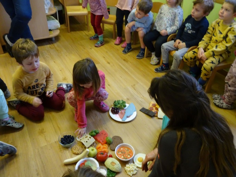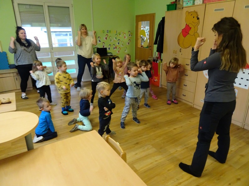 V naši skupini se zavedamo, kako pomembna je zdrava prehrana in kako pomembno je, da se dnevno gibamo, da tečemo in telovadimo. Z otroki smo izdelali plakat na temo "Zdrava prehrana"; v našo skupino smo povabili tudi gospo Katjo LEBAR iz Zdravstvenega doma Murska Sobota, ki nam je pokazala, kaj vse spada k zdravemu obroku in kako si zdrav obrok hitro lahko sestavimo. Skupaj z nami pa je tudi telovadila.