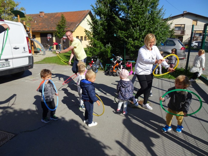 Danes smo v enoti URŠKA obeležili DAN SLOVENSKEGA ŠPORTA in si pripravili razgiban dopoldan. Po skupnem ogrevanju smo se podali na poligon, potem smo zaplesali in prilegla se je tudi malica.