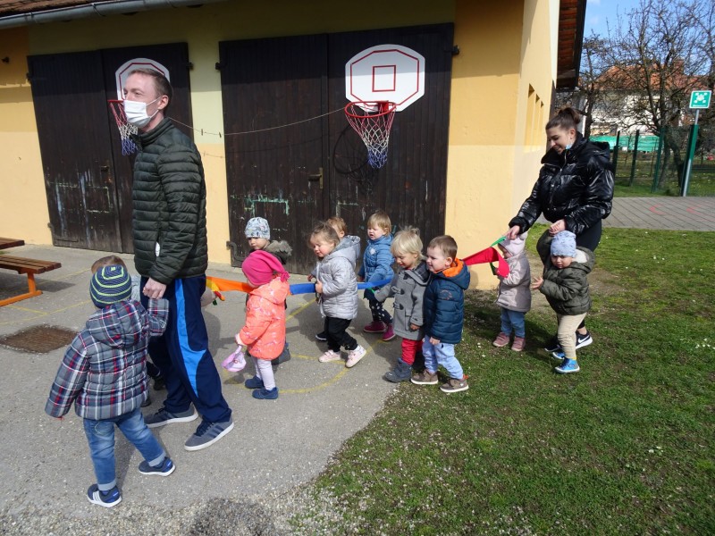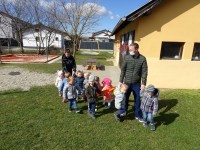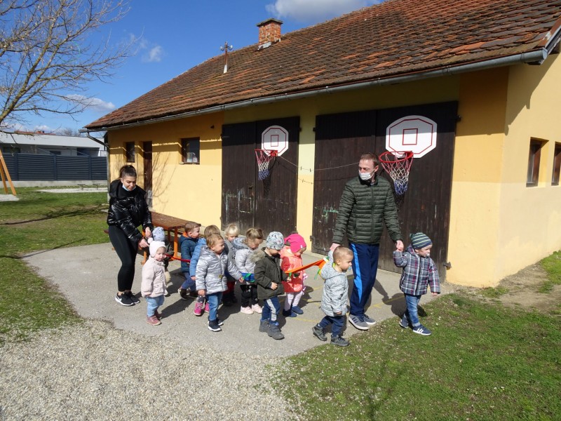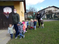 Lepo vreme nas je povabilo na dopoldanski sprehod po vrtčevskem dvorišču.