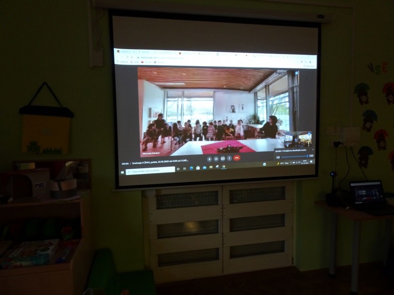 V petek, 22.10. 2021 ob 9.00 uri, smo imeli srečanje s prijatelji iz Salzburga preko spleta. Drug drugemu smo se predstavili, si zapeli pesmice in prisluhnili glasbeni pravljici...in že se veselimo našega naslednjega srečanja v mesecu novembru.