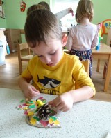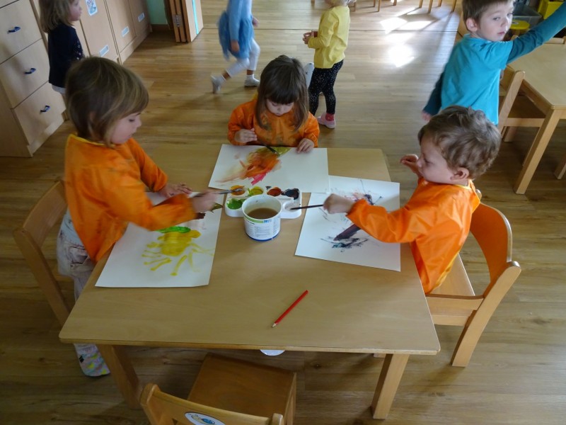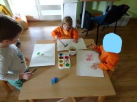 Današnji dan je bil namenjen kreativnemu ustvarjanu, igri na vrtčevskem igrišču, prebiranju pravljice in SKUPNI ZABAVI.