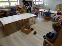 Danes nas je v vrtcu počakal poseben gost: JEŽ. Z velikim navdušenjem smo sprejeli našega gosta in ga pozdravili v našem vrtcu. Po razigranih dejavnostih na vrtčevskem igrišču, se je prilegla malica in našega ježka smo spustili nazaj na vrt - v naravo.