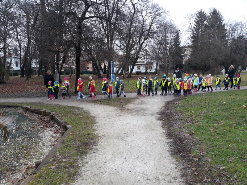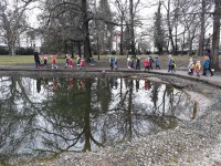 Obiskali smo račke, se sprehodili mimo gradu, se čudili velikim ptičjim gnezdom in poslušali krakanje na drevesih.