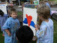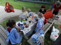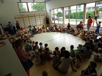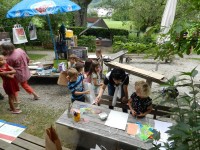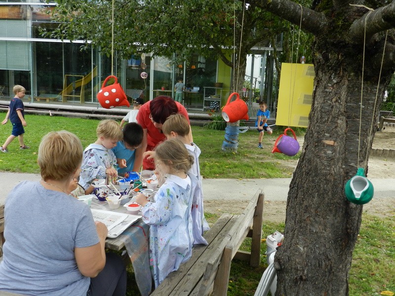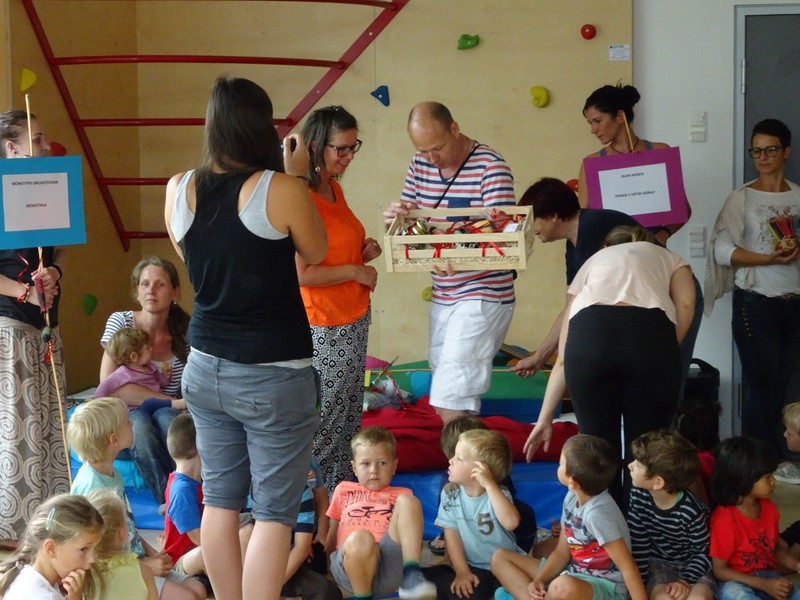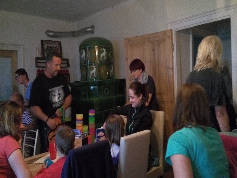 Prvi dan druženja v dopoldanskih delavnicah in popoldanskih aktivnostih je za nami. Po skupnem uvodnem delu, kjer je med drugim ob instrumentalni spremljavi v slovenskem jeziku donela pesem Marko skače, kasneje pa še znana Vse najboljše ob rojstnem denvu gospe Ficko, smo pričeli z ustvarjanjem.