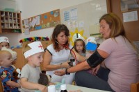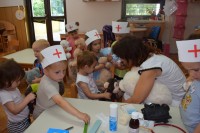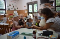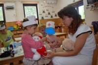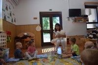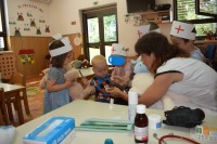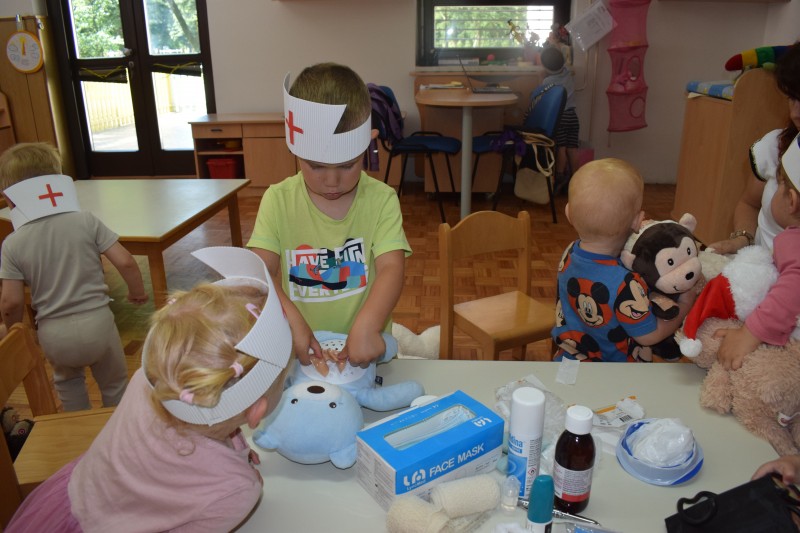 V skupini mlajših otrok smo dopoldan preživeli v družbi Valentine Golob, dr. med., spec. pediatrije, ki je otrokom prikazala svoje delo in jih popeljala v svet medicine. Pediatrinja je v svojo predstavitev vključila številne zanimive in poučne aktivnosti. Otroci so imeli priložnost izvedeti več o zdravniških pripomočkih, poslušali so razlage o osnovnih postopkih prve pomoči in se naučili nekaj o pomenu zdravja.