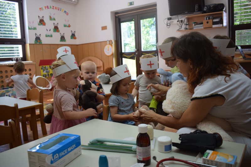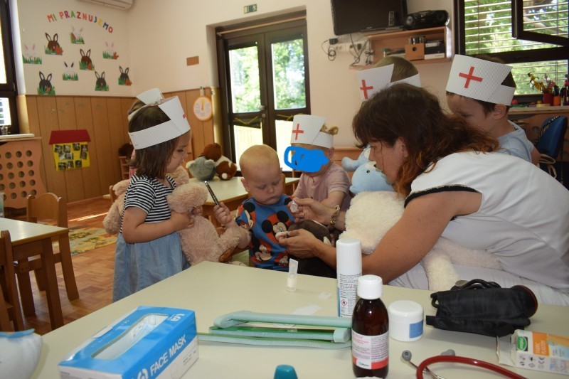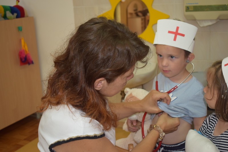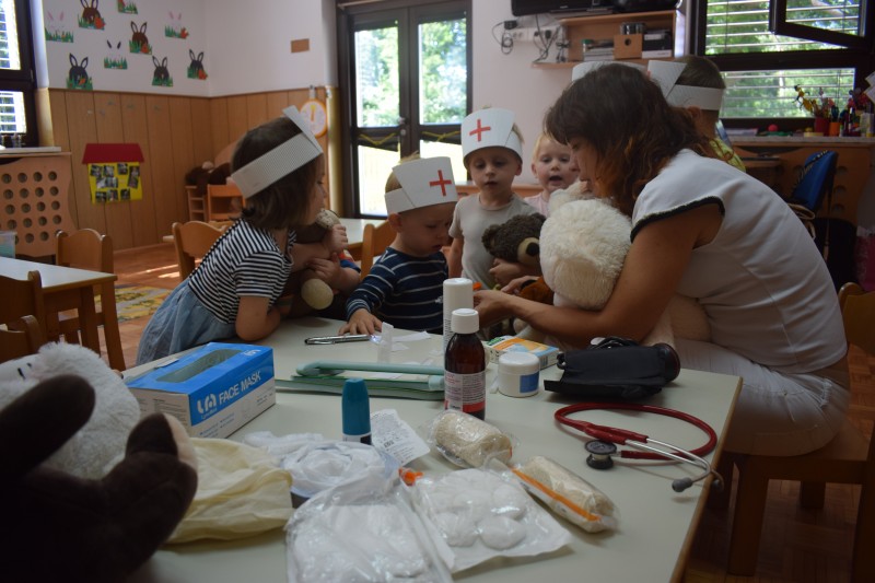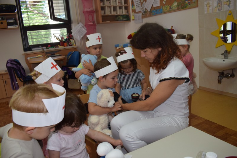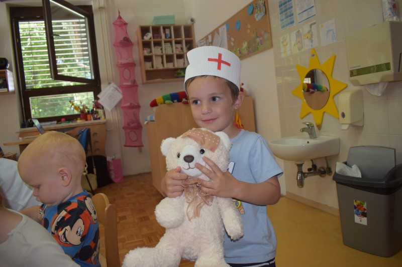 Najbolj zanimiv del obiska je bil, ko so otroci lahko z medvedki prihajali k »zdravniku«. Vsak otrok je prinesel plišastega medvedka, ki ga je pediatrinja "pregledala". Otroci so se navdušeno igrali zdravnike, poslušali medvedkova srca s stetoskopom, povijali njihove "poškodbe" in skrbeli za njihovo dobro počutje. Obisk je bil zelo poučen, saj je na prijeten in igriv način predstavila delo zdravnika.