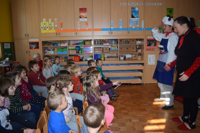 Vse to se je dogajalo v petek, 20.1.2017 ob uprizoritvi predstave gledališča KU-KUC, ko sta igralki približali otrokom, kaj je sreča.
