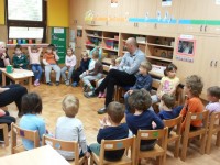 OBISKAL NAS JE PREDSEDNIK KRAJEVNE SKUPNOSTI RAKIČAN, G. MATJAŽ DURIČ, KI NAM JE ZAUPAL, DA VAS IMA 348 HIŠNIH ŠTEVILK, 1370 PREBIVALCEV, OD TEGA 200 OTROK IN ODGOVORIL NA RADOVEDNA VPRAŠANJA OTROK, KAJ DELA KOT PREDSEDNIK.