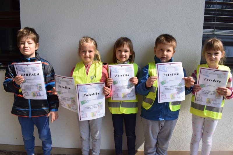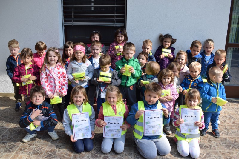 Kot enota smo za nagrado prejeli odsevnike za vse otroke, ki jim bodo služili za vidnost in previdnost v prometu.