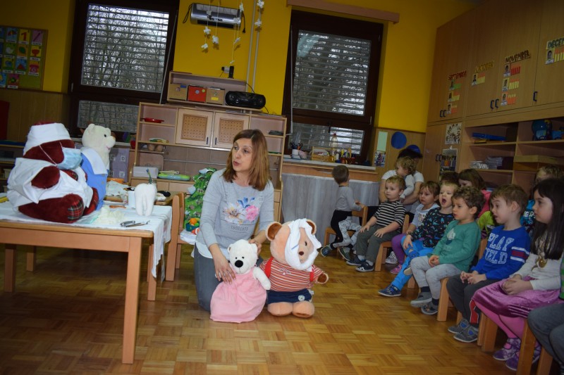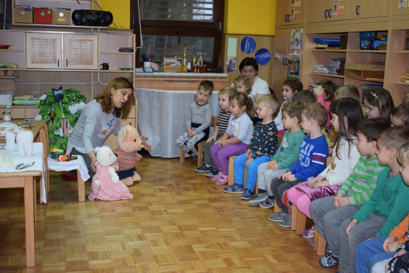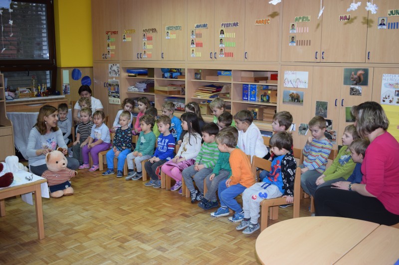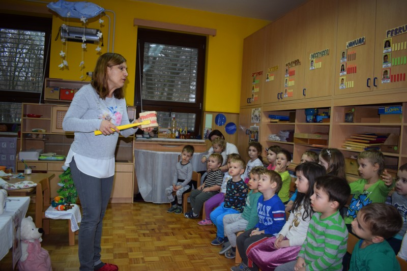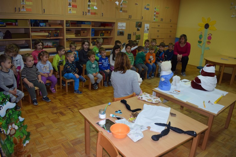 Obiskala nas je zobna asistentka in nam s pomočjo medvedka Šapija predstavila pomen in tehniko ščetkanja.