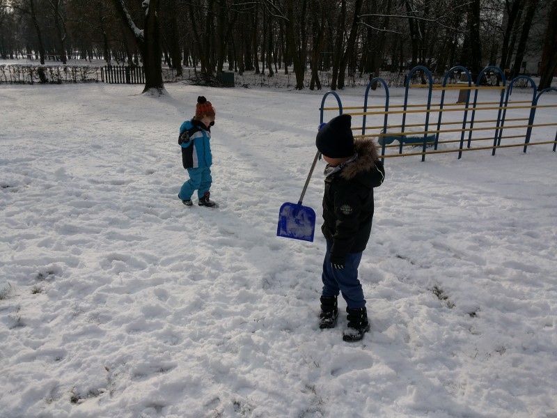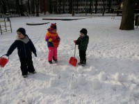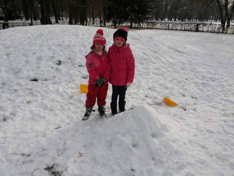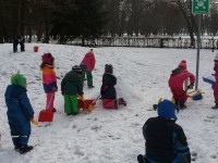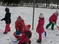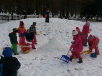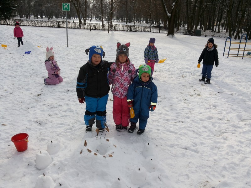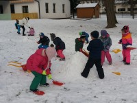 Igra na snegu in s snegom je bila otrokom zanimiva, sproščujoča, ustvarjalna, saj so oblikovali snežne torte, skulpture...