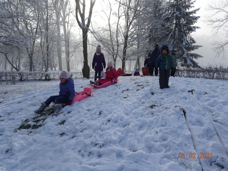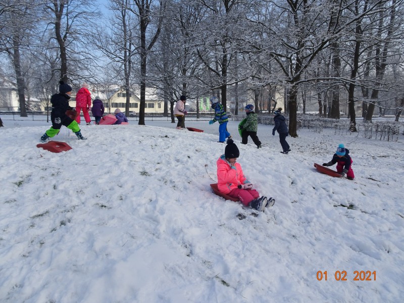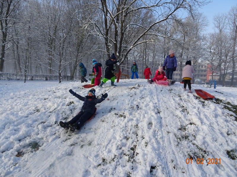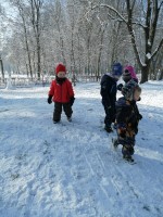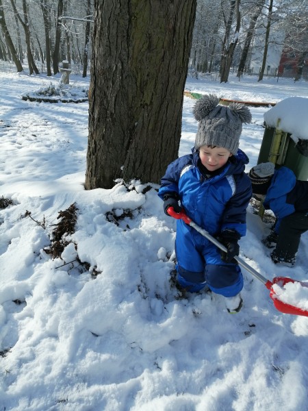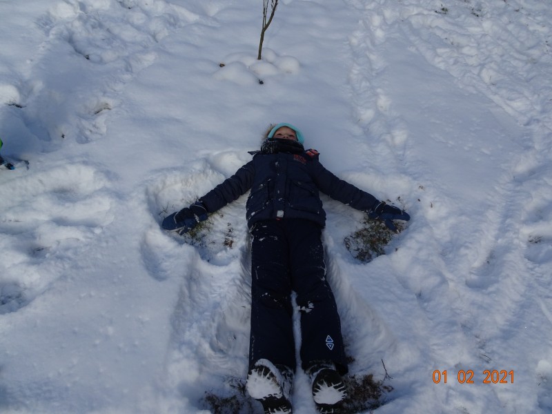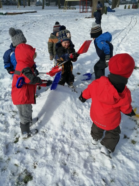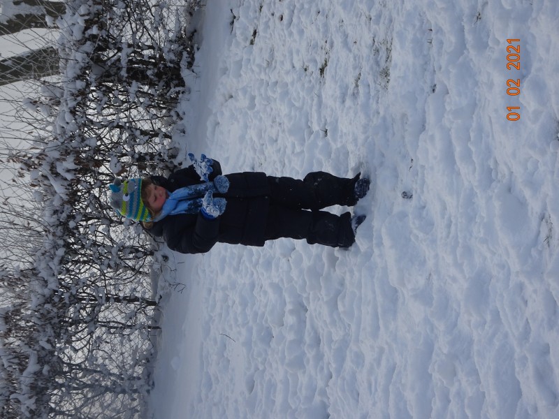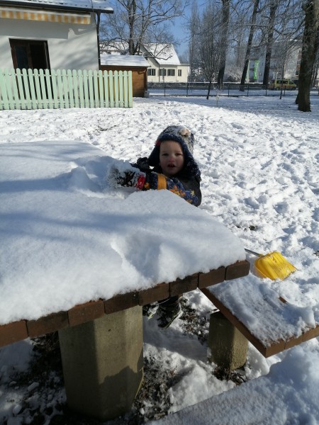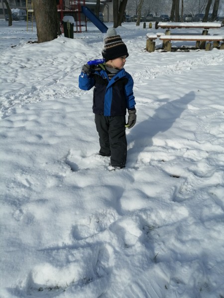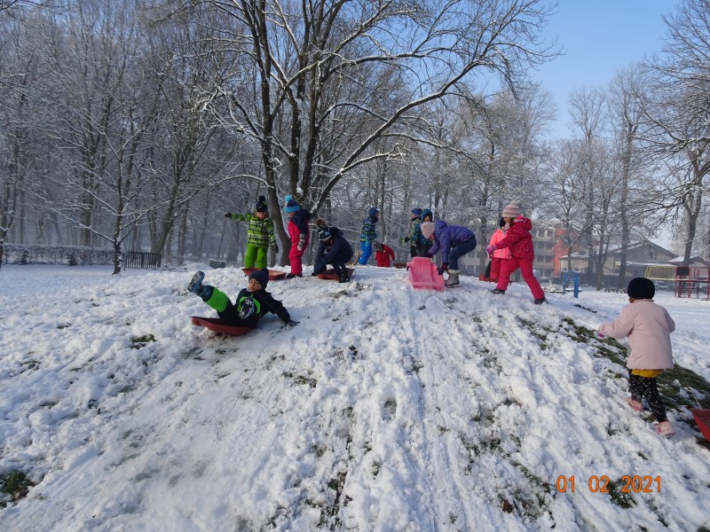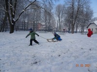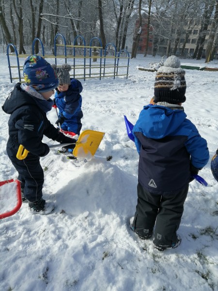 Sneg je tu in lička vsa so rdeča. Danes pa nam je za vrat še padla kakšna kepa. Sneg je razveselil otroke, saj so dopoldne preživeli zunaj na snegu. Vzdušje je bilo razigrano in veselo. Kepali smo se, sankali, kotalili, naredili pa tudi sneženega moža.