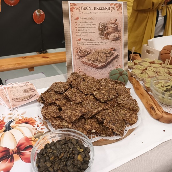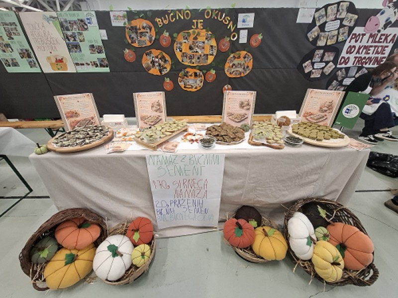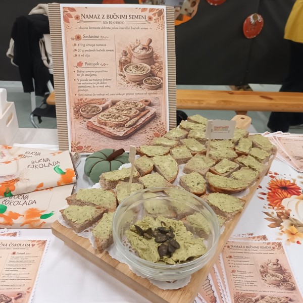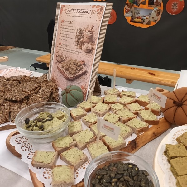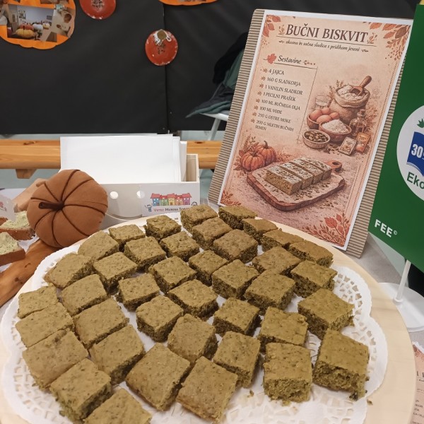 V okviru eko projekta Altermed smo pripravili razstavo z naslovom Bučno je okusno. Skupaj z otroki smo raziskovali vsestranskost buče in ustvarili slastne izdelke: bučno čokolado, bučne krekerje, bučni namaz in bučni biskvit.