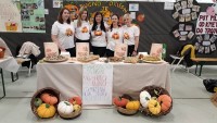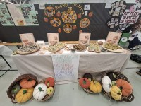 Našo stojnico smo okrasili z izdelki otrok – čudovitimi bučami iz blaga, pobarvanimi bučami, zapisani recepti ter fotografijami, ki prikazujejo potek ustvarjanja posameznih dobrot ter seveda obiskovalce pogostili z našimi dobrotami.