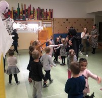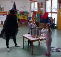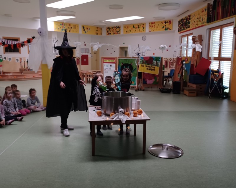 Tudi v naši enoti je bilo danes veselo. Družili smo se s čarovnico Rimano ob kuhanju napoja. Sledilo je veselo rajanje in druženje ob glasbi...