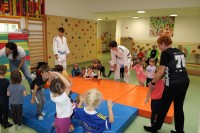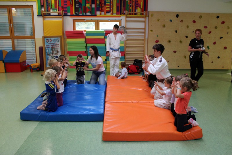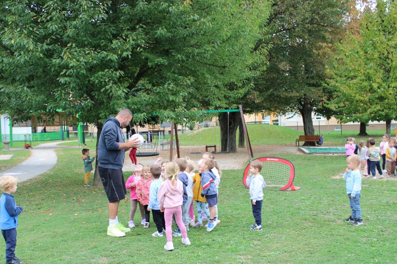 Danes smo v vrtcu na prav poseben način obeležili DAN SLOVESNEKGA ŠPORTA. Obiskali so nas judoisti, nogometaši in plesalci, ki so otrokom na zabaven in spodbuden način predstavili svoje športe.