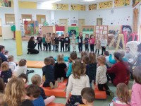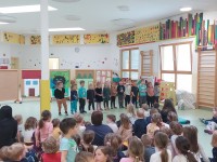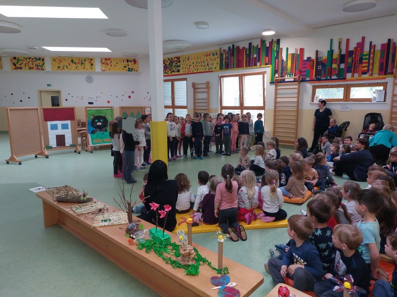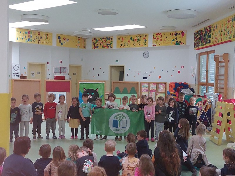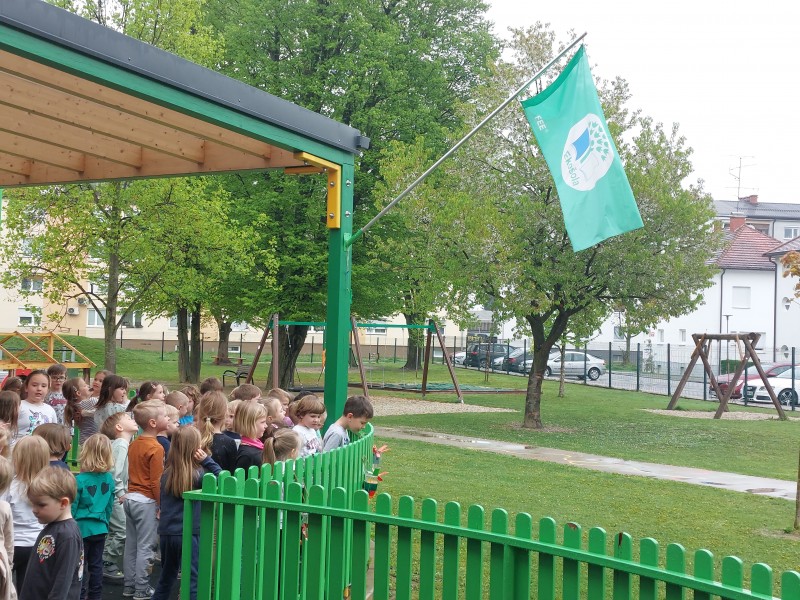 Kljub slabemu vremenu smo tudi mi ta dan obeležili s kratko proslavo in izobešanjem eko zastave.