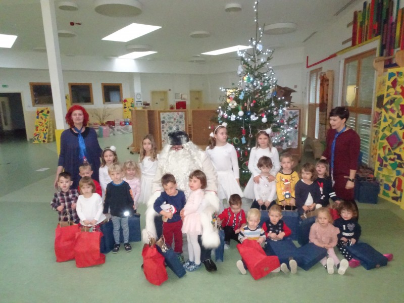 Pa je le prišel med nas, stari dober dedek Mraz. Smo ga težko pričakali in z veseljem z njim pokramljali.