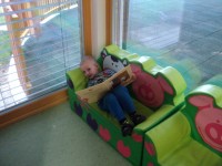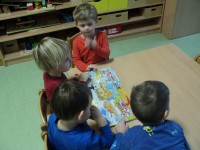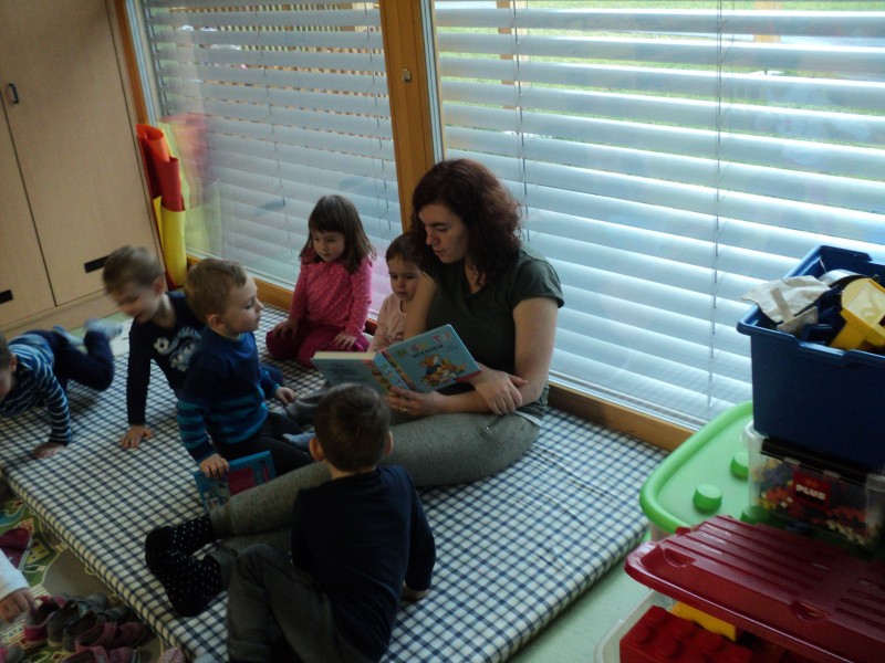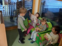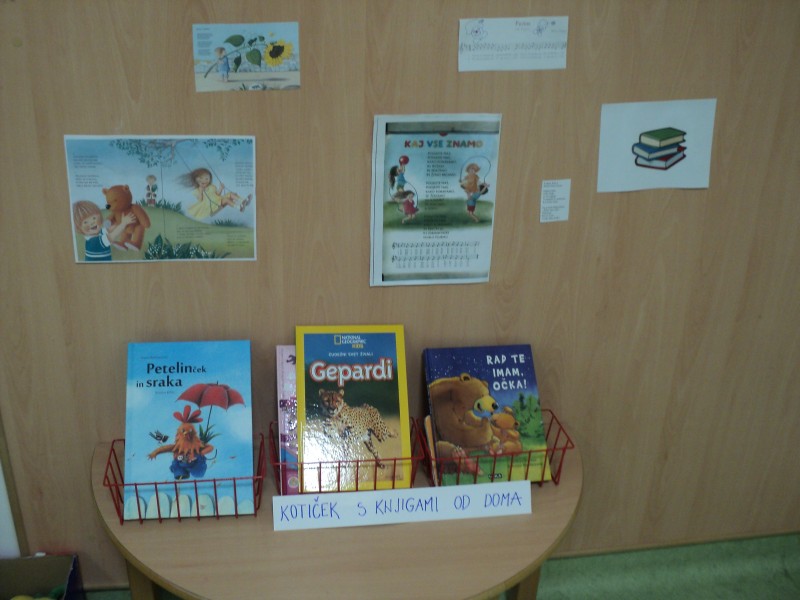 V mesecu februarju smo veliko časa preživeli v družbi knjig in ostale literature. Uredili smo nov knjižni kotiček, prinašali knjige od doma, si ustvarili lastno knjižico in vsakodnevno brali pravljice, pesmice in se zabavali ob deklamaciji Žabja šola. Ogledali smo si predstavo in ustvarjali z ogljem naše občutke in doživljanja. Naš odnos do knjig se je spremenil, saj jih sedaj še bolj cenimo in pazimo nanje. Ob tem smo razvili vrednoti spoštovanja in odgovornega odnosa do knjig.