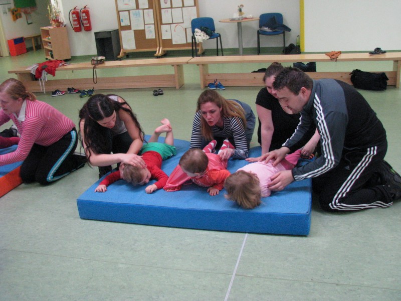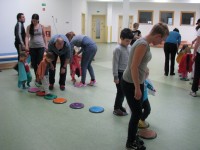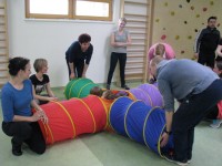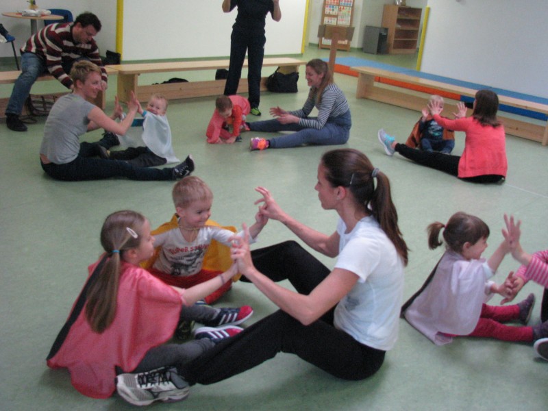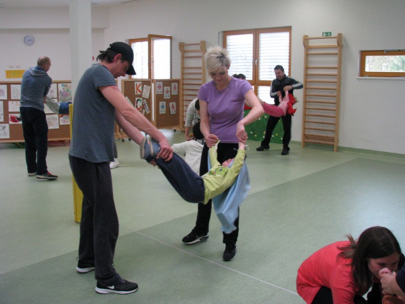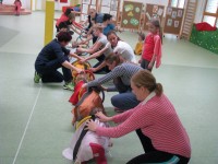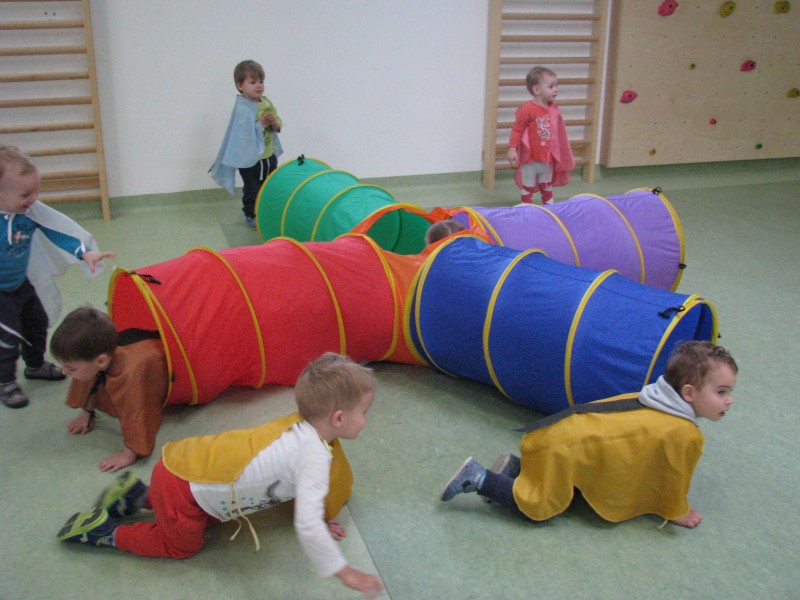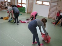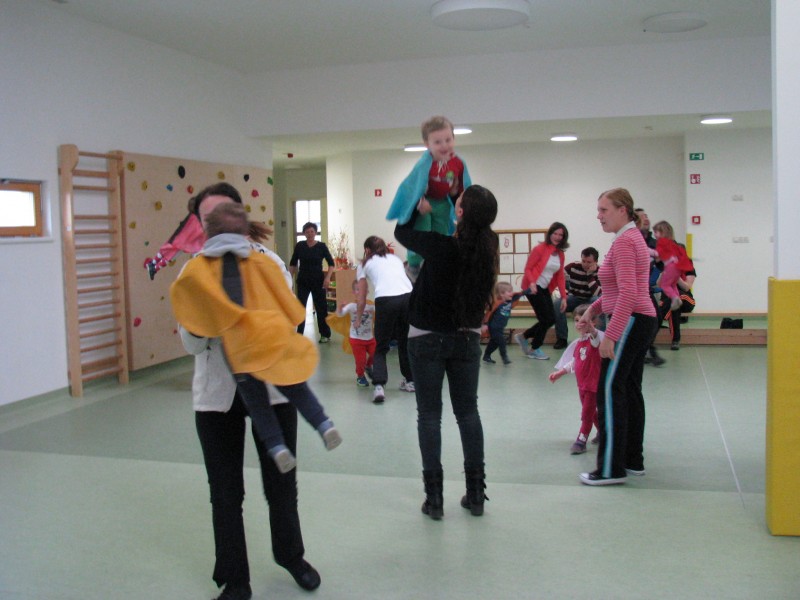 Metuljčki so ob glasbi poleteli, se zavrteli visoko v zraku, nato premagali vse ovire, potipali cvetlice in na koncu omagali in se ob glasbi sprostili na » travi«.
