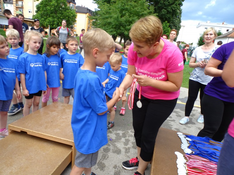 V okviru programa Mladi športnik, pri katerem sodelujejo otroci iz prilagojenih oddelkov in oddelek otrok starih 5-6 let, smo izvedli zaključno prireditev. Otroci so se pomerili v različnih vadbah ter preizkusili svoje gibalne spretnosti. Pri tem so se zabavali, se družili, si medsebojno pomagali ter uspešno izvajali posamezne naloge. Na koncu so bili zmagovalci vsi, ki so sodelovali, za kar so prejeli tudi medalje.