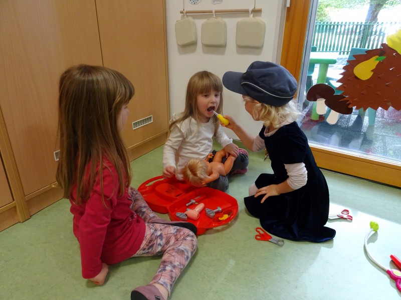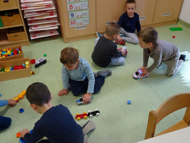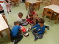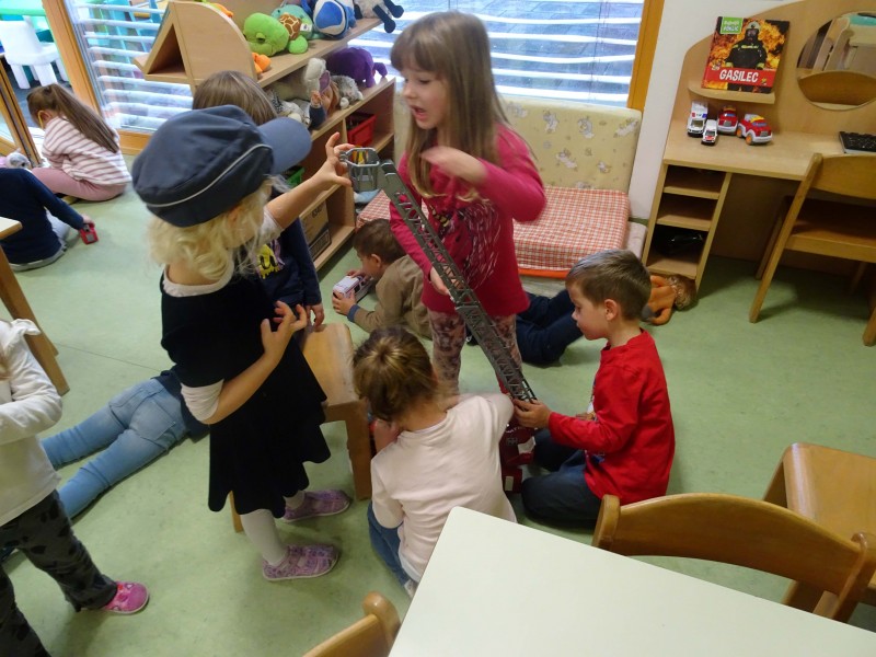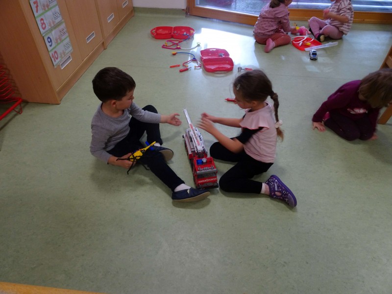 V igralnici smo si uredili nov igralni kotiček, kjer so se otroci lahko vživeli v vlogo pravih junakov – gasili požare, reševali ponesrečence in skrbeli za red in varnost. Otroci so v vrtec prinašali različne predmete, igrače, slike in knjige, povezane s tematiko, kar je naš kotiček še dodatno obogatilo.