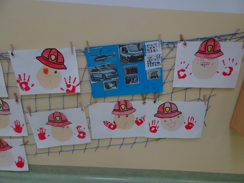 V skupini otrok, starih 4 - 5 let, smo se pogovarjali o pomembnih poklicih, ki vsakodnevno skrbijo za našo varnost – o gasilcih, reševalcih in policistih.