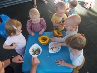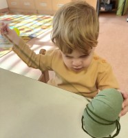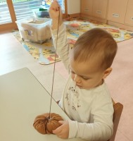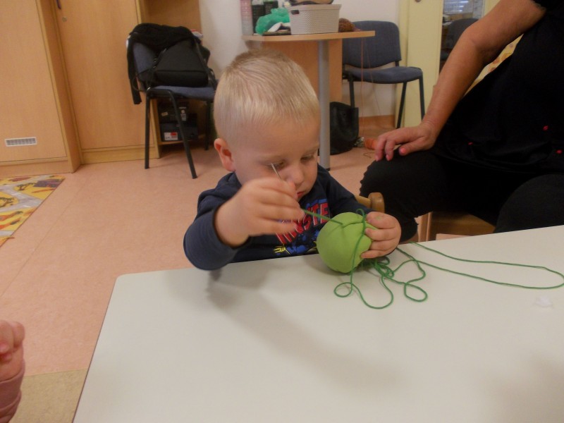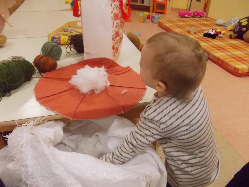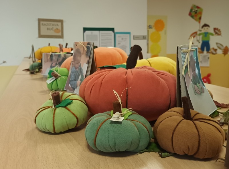 V oddelku 1-2 let smo v sklopu Eko projekta: Ne zavrzi oblek, ohrani planet, priredili razstavo buč iz blaga. V začetni fazi smo spoznavali različne jesenske pridelke, med njimi tudi buče. Starši in otroci so pridno prinašali rabljena oblačila, mi pa smo jih odnesli do šivilje ga. Milene, ki nam jih je sešila. Otroci so osnovo napolnili s polnilom ter buče tudi zašili. Našo garderobo tako krasi prekrasna razstava buč.