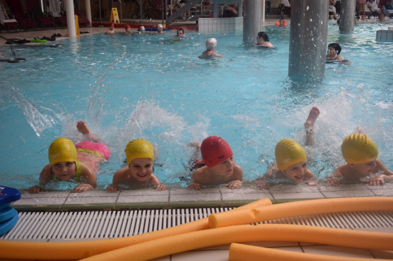Z otroki iz enote Veverička in enote Gozdiček smo se odpravili na plavalni tečaj v Zdravilišče Radenci. Plavalnega tečaja so se otroci zelo veselili in bili v pričakovanju, da se naučijo nekaj novega. Na tečaju so se prilagajali na vodo, premagovali strah, se učili osnove plavanja, nekateri otroci pa so že naredili prve plavalne zamahe. Čeprav je voda otroke zelo utrudila, je bila otrokom vožnja z avtobusom posebno doživetje.