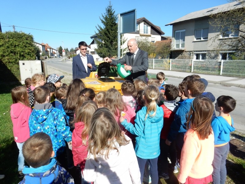 Predšolske otroke je obiskal direktor podjetja Saubermacher – Komunala Murska Sobota d.o.o. Drago Dervarič, ki pa ni prišel le na obisk, ampak je otrokom razdelil posode za zbiranje odpadnega olja za gospodinjstva. Pridružil se nam je tudi podžupan MOMS g. Boštjan Berlak.