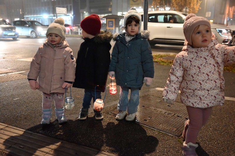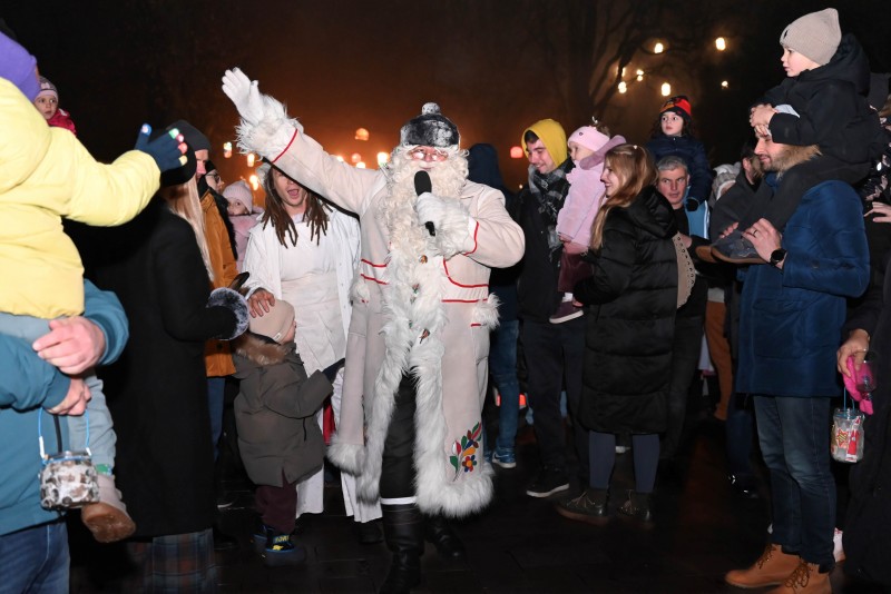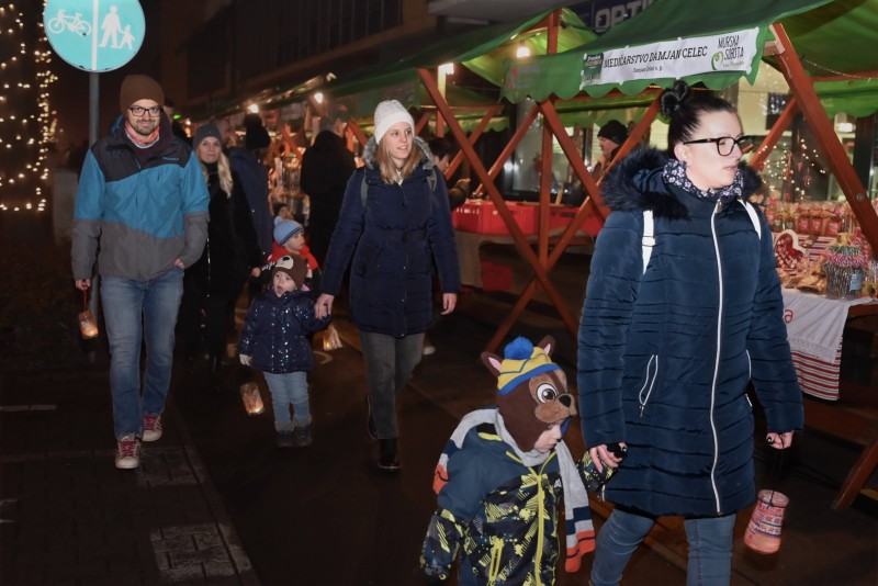 Ko je tema prekrila naše mesto, smo se majhni in veliki z lučkami podali na pot do grajskega dvorišča, kjer smo pričakali Dedka Mraza.