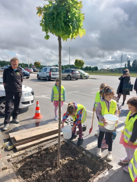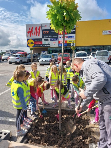 Ob dnevu Zemlje, katerega obeležujemo 22.4. pred trgovskim centrom Maximus že tradicionalno posadijo drevo. Odzvali smo se povabilu in pomagali pri sajenju drevesa. Ker nam vreme ni bilo naklonjeno smo lahko to izvedli šele sedaj. Vrtnarji iz vrtnarstva so nas podučili kakšen je postopek sajenja in kako skrbimo za posajeno drevo.
