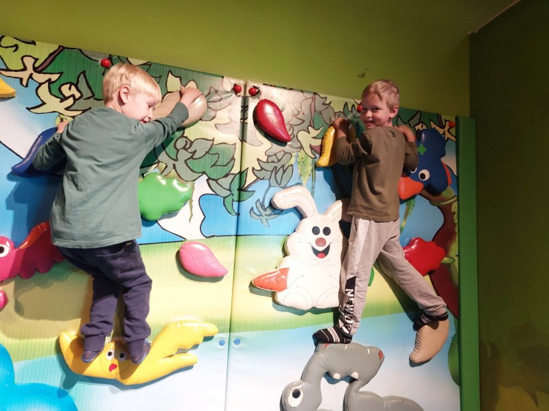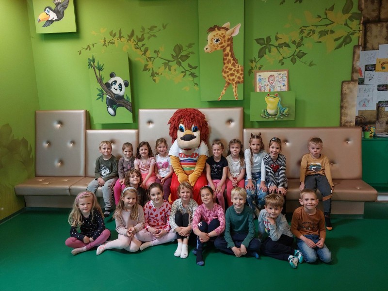 V igralnici Maxiland nas je pričakal levček Maxi in preživel nekaj trenutkov z nami. Najbolj smo se razveselili igre na igralih.