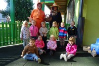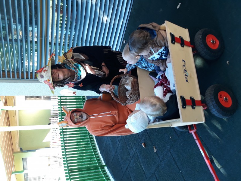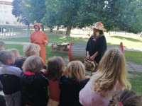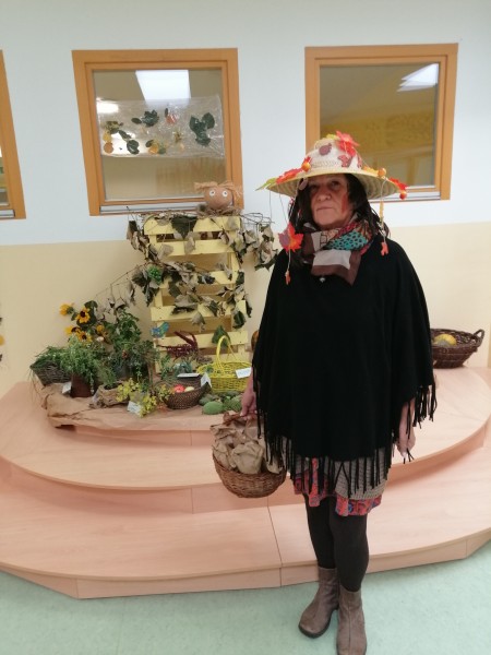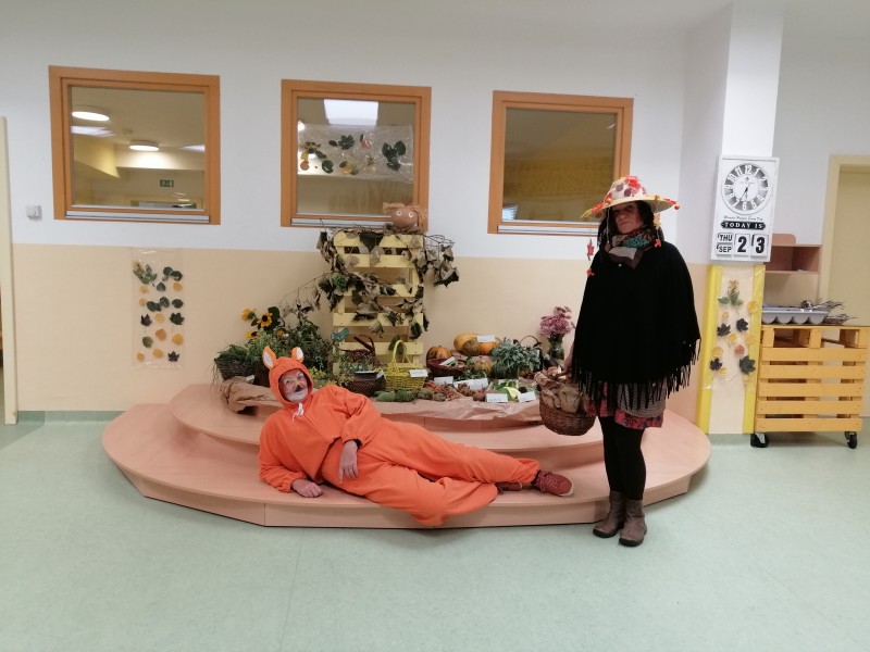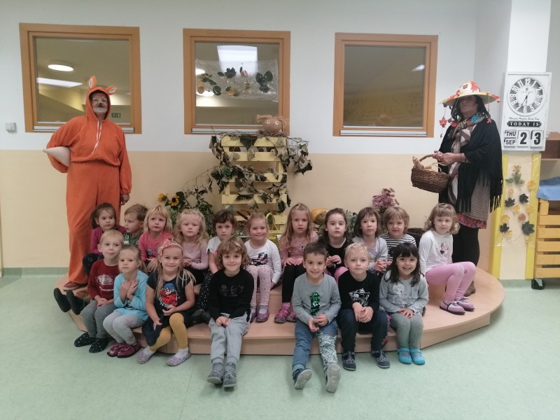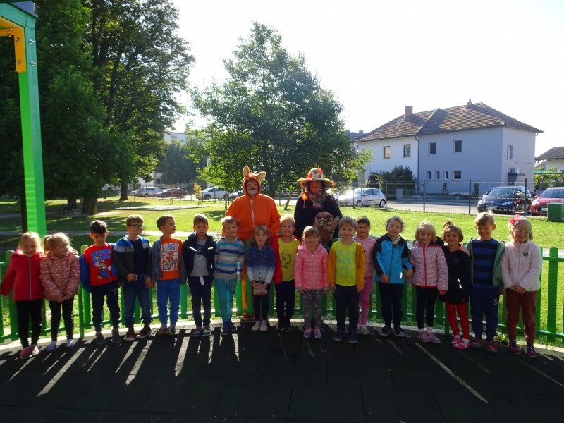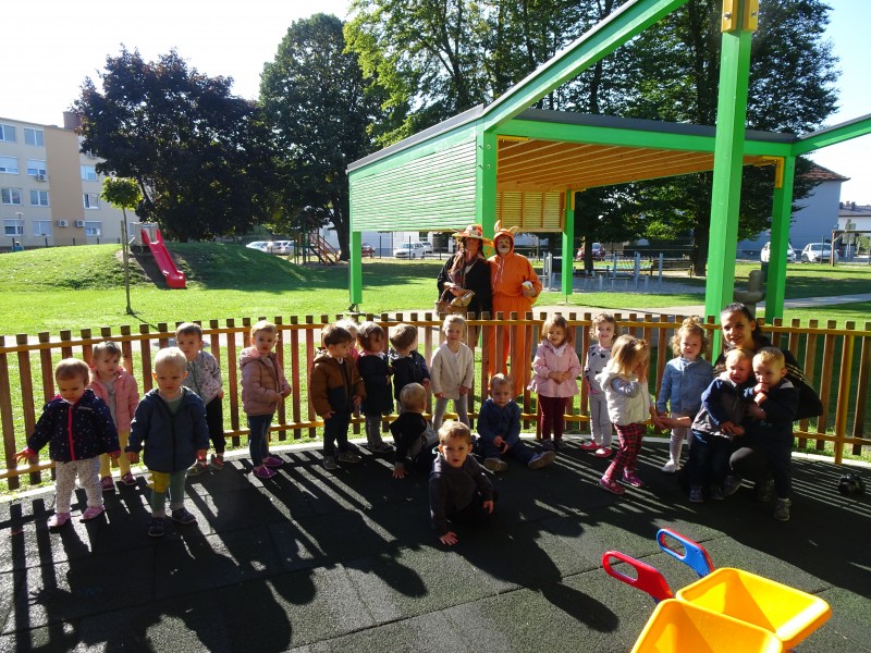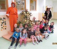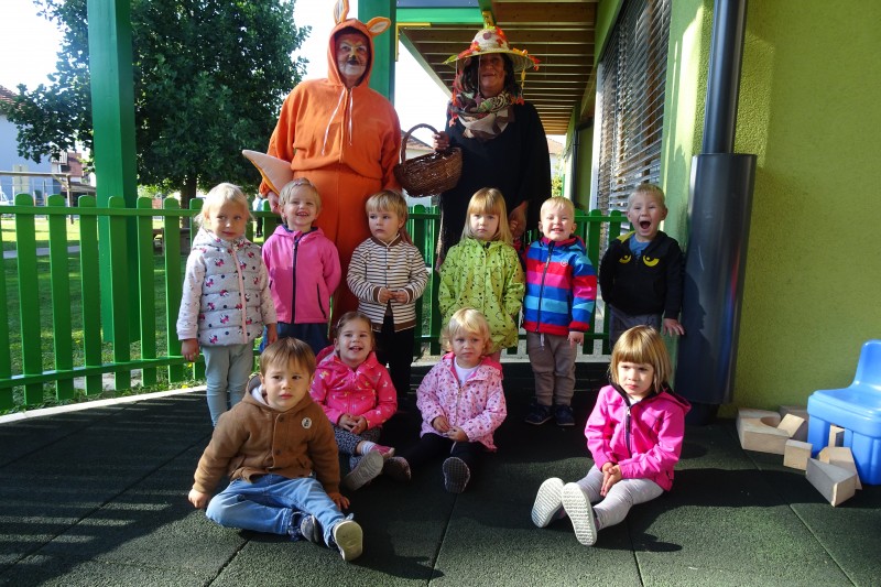 Tudi nas sta obiskala teta Jesen in lisjak Tomi . Z nami sta pokramljala, zapela in nas obdarila s suhim sadjem.